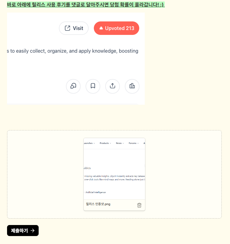 - SNS 공유: 친구들과 함께 참여하면 릴리스AI의 순위 상승에 더 큰 도움이 됩니다.