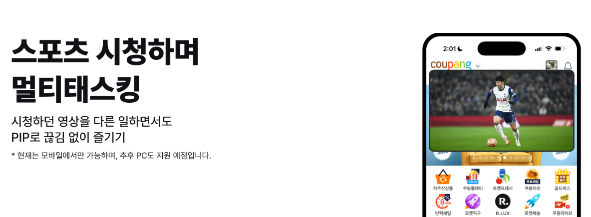 - 부가 콘텐츠: 하이라이트, 풀경기 다시보기, 실시간 채팅, 동시 4경기 시청 등