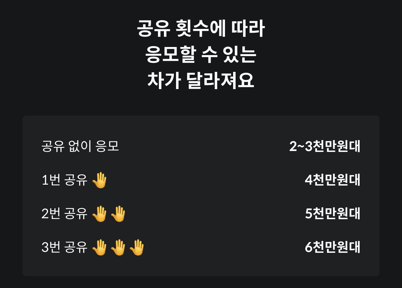 (4천만 원 이상 차량 응모 시 카카오톡 공유 미션이 있을 수 있습니다.)