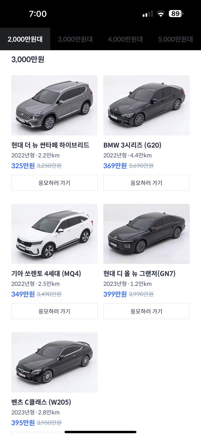 아래 표에서 실제로 응모 가능한 차량과 이벤트 가격을 확인해보세요.