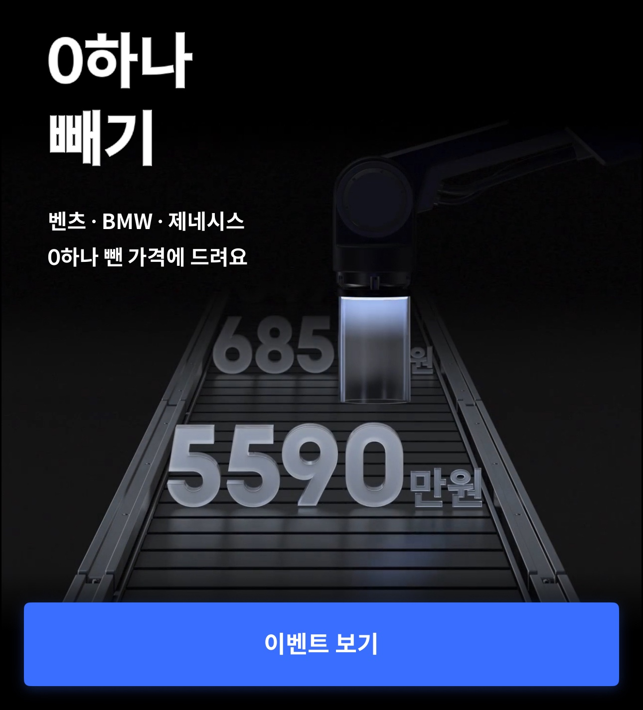 앱 내 ‘0 하나 빼기’ 이벤트 배너를 클릭해 이벤트 페이지로 이동합니다. - 원하는 차량 선택 & 응모