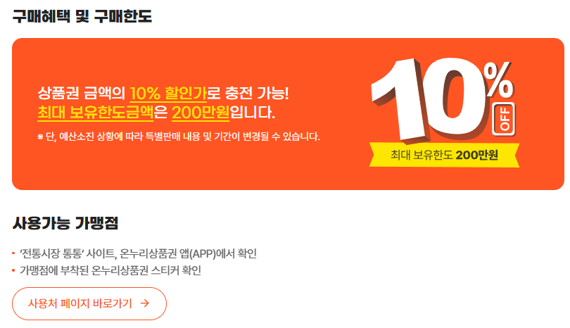 - 사용처: 전국 전통시장, 골목형상점가 등 온누리상품권 가맹점