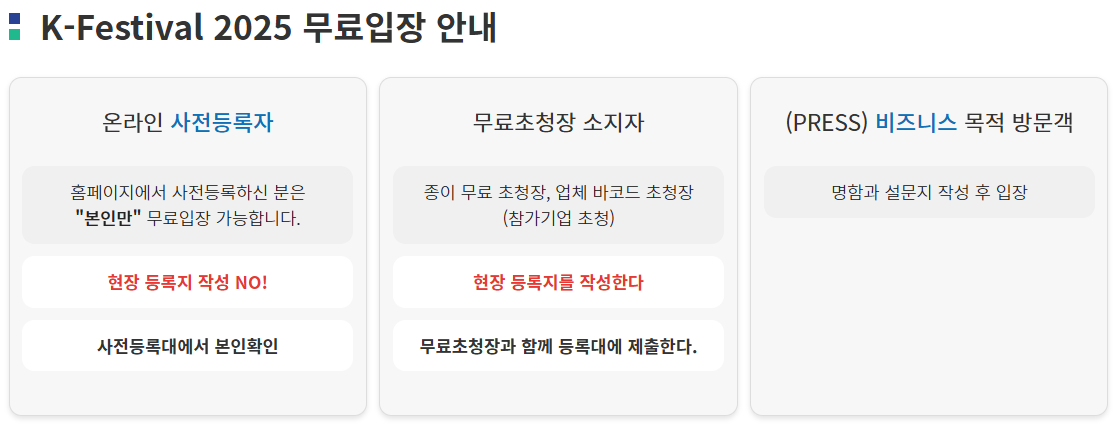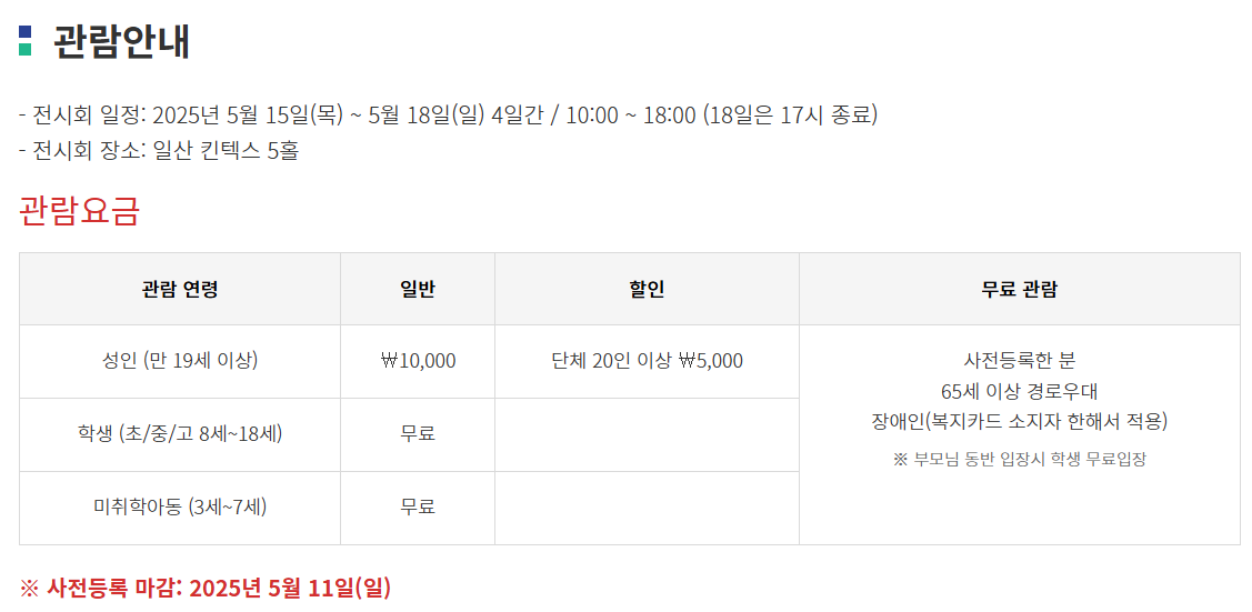 사전등록을 하면 무료로 입장할 수 있으니, 미리 신청하고 알찬 하루 보내시길 추천합니다!