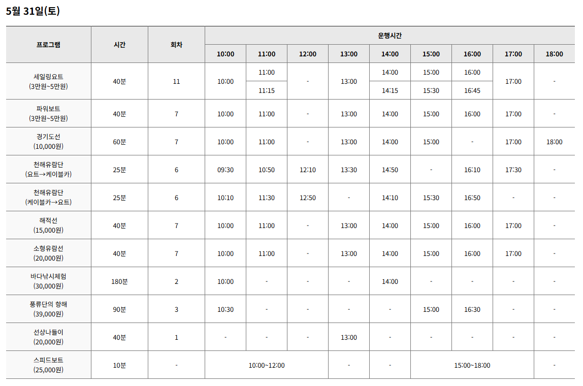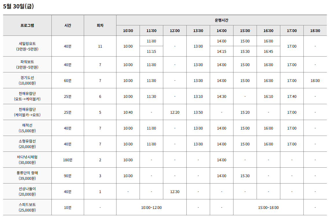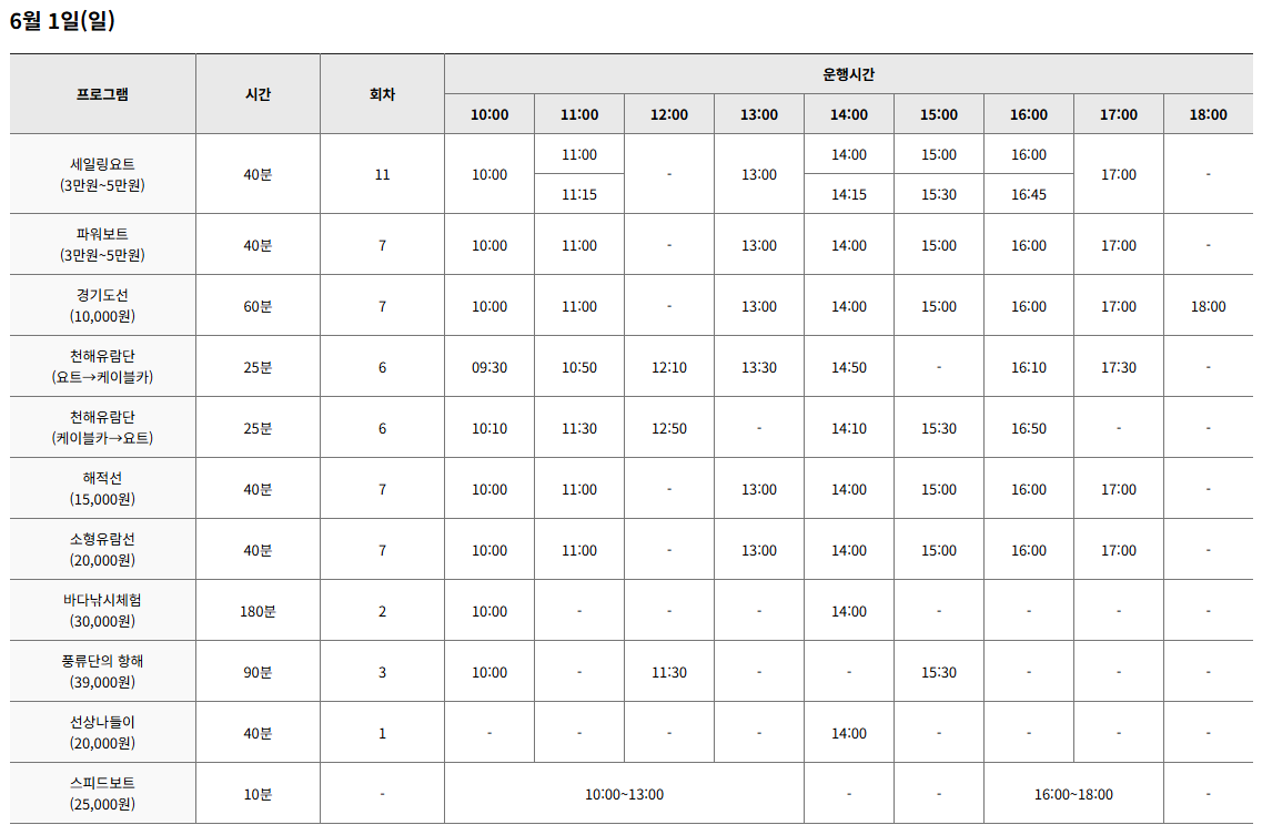 • 인기 승선체험과 낚시 프로그램은 유료이며 사전 예매 필수!